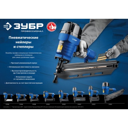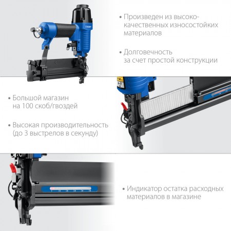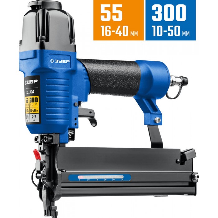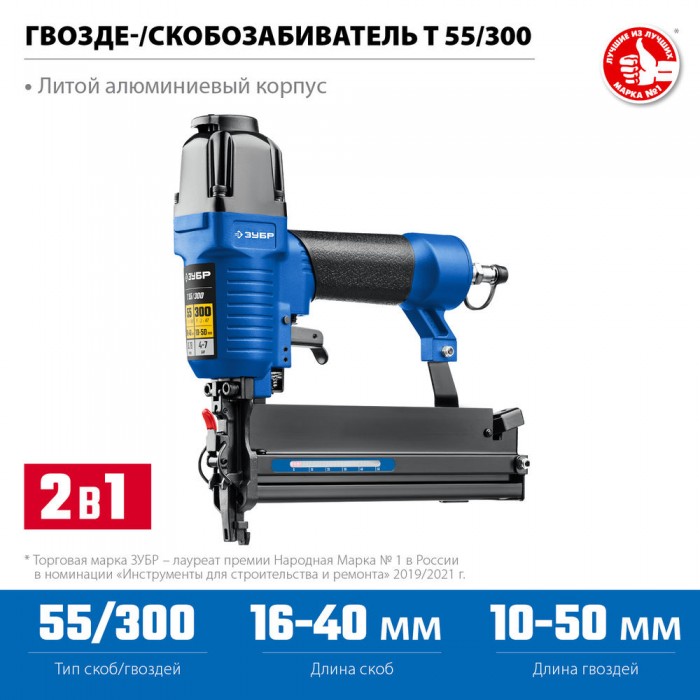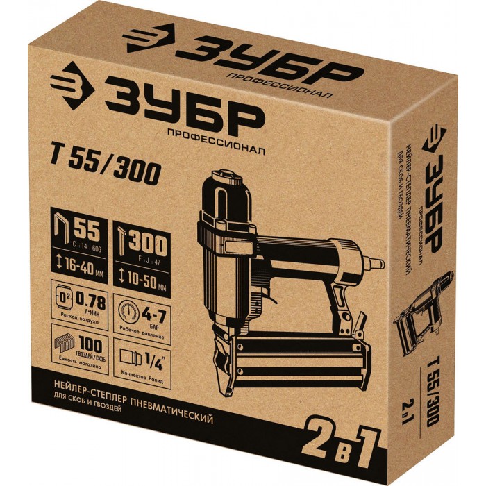 Пневматический нейлер-степлер 18Ga 2-в-1, для скоб тип 55 и гвоздей тип 300 ЗУБР Т55/300 Профессионал 31937