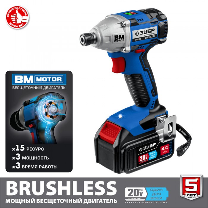 Профессиональный винтоверт оснащен BRUSHLESS двигателем, который обеспечивает высокие удельные характеристики и производительность благодаря двум емким батареям в комплекте. Точное управление параметрами двигателя позволяет ему постоянно работать в наиболее оптимальном режиме, регулировать крутящий момент, реализовывать дополнительные рабочие функции