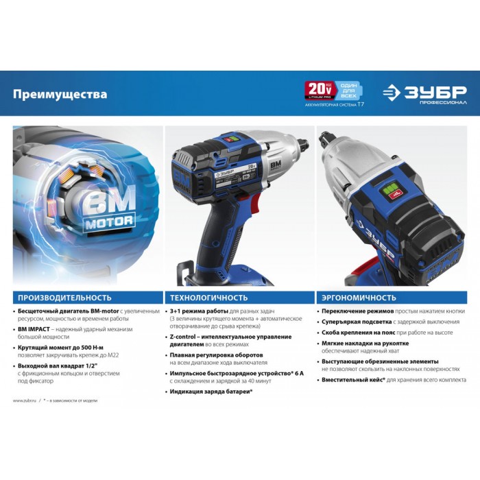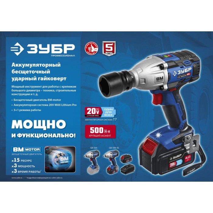 Гайковерт профессионального уровня с BRUSHLESS двигателем высокой эффективности и надежности. Крутящий момент 500 Нм позволяет закручивать крепеж размером до М22. Дополнительный автоматический режим ″срыва″ крепежа упрощает серийную работу