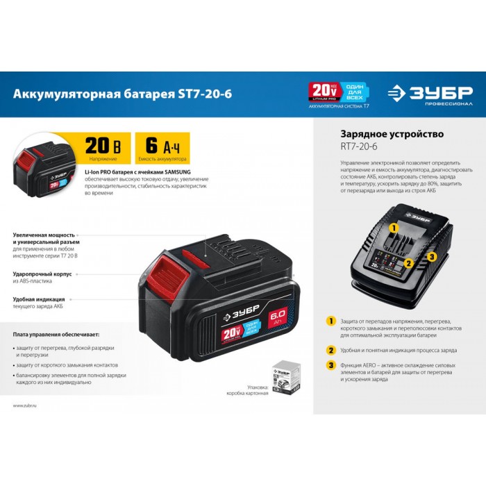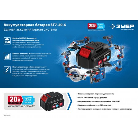 Аккумуляторная батарея 20 В 6.0 А·ч T7 ЗУБР ST7-20-6