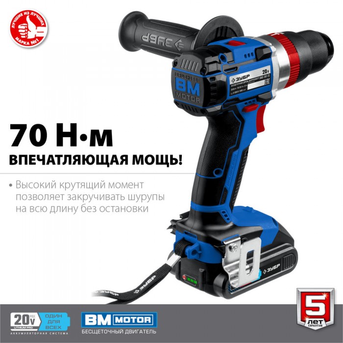Высокотехнологичный шуруповерт профессионального уровня с передовым BRUSHLESS двигателем. Высокий крутящий момент 70 Нм, ударная функция, надежность конструкции и отличная эргономика позволяют выполнять практически любую работу - сверление дерева сверлом Левиса, сверление металла ступенчатым сверлом, сверление кирпича и легкого бетона, заворачивание крепежа диаметром до 12 мм, перемешивание ЛКМ и прочее без усилий с Вашей стороны и перегрузки инструмента. Комплектация с двумя батареями и быстрозарядным устройством позволяет начать работу сразу после покупки