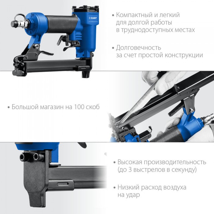 Пневматический степлер для скоб 21Ga, тип 80 (6-16 мм) ЗУБР Т80 Профессионал 31938