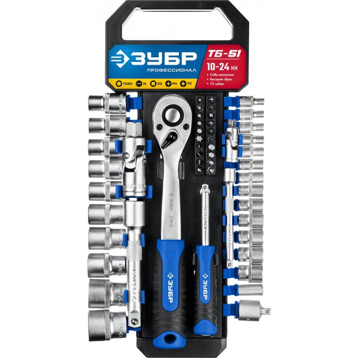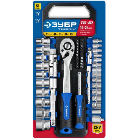 Набор торцовых головок 51 предм. 1/2" Профессионал ЗУБР ТБ-51 27647-H50