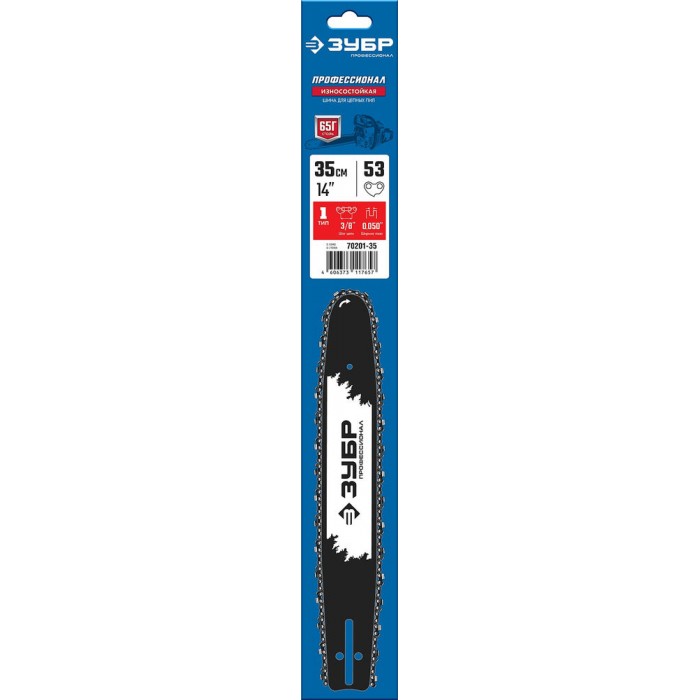 Шина для бензопил тип 1, шаг 3/8", паз 1.3 мм, 35 см ЗУБР Профессионал 70201-35