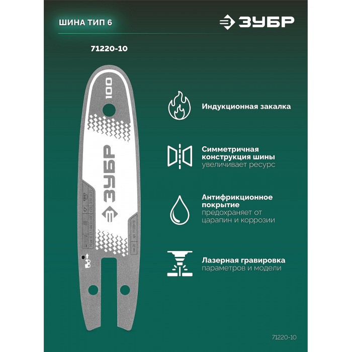 ЗУБР тип 20, 10 см, шаг 3/10?, паз 1.1 мм, 28 звеньев, шина (71220-10)
