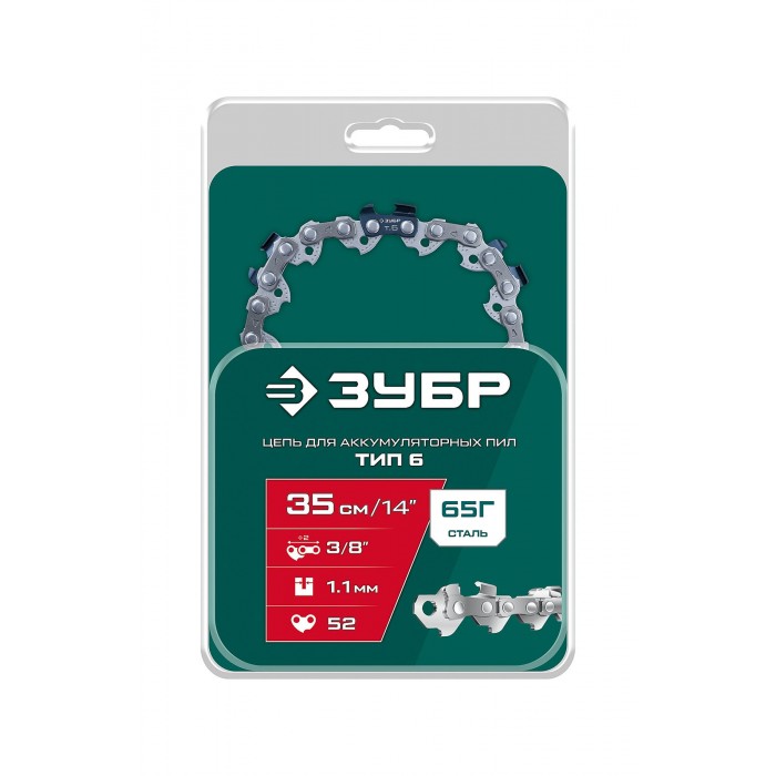 ЗУБР тип 6, 35 см, шаг 3/8?, паз 1.1 мм, 52 звена, цепь (71306-35)