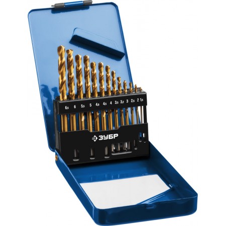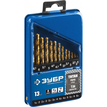 Набор сверл по металлу 13 шт (1.5-6.5 мм), сталь Р6М5, класс А, титановое покрытие ЗУБР ТИТАН Профессионал 29615-H13_z01