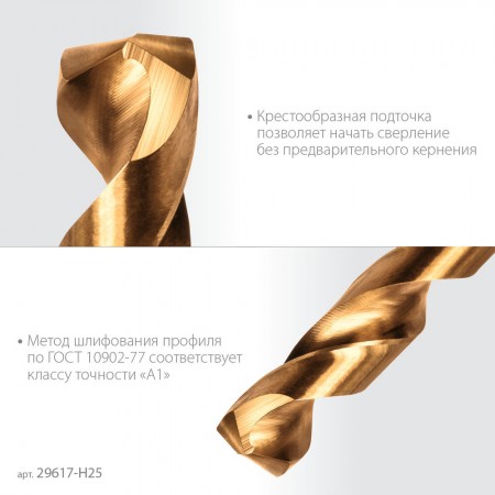 Сверло изготовлено методом шлифования профиля по ГОСТ 10902-77 и соответствует классу точности сверления ″А1″