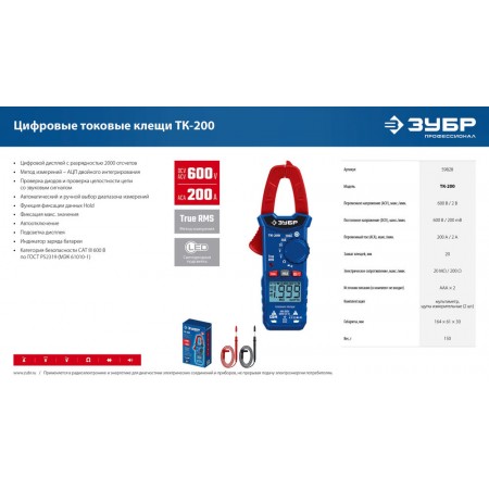 Портативные токоизмерительные клещи – точный прибор с оптимальным спектром измерительных функций. Особая эргономичная и компактная конструкция обеспечат удобство проведения измерений, даже одной рукой. • Высокая точность измерений • Эргономичный корпус • Простое и интуитивно понятное управление • Подсветка ЖК-дисплея • Автоматическое отключение питания • Компактный размер • Захват клещей 20 мм • Сохранение результата измерений (функция Hold) • Сохранение максимальных значений (MAX) • Диодный тест • Прозвонка цепей со звуком • Автоматическая индикация перегрузки • Категория безопасности по ГОСТ Р 52319 (МЭК 61010-1): КАТ III 600 B • Степень защиты по ГОСТ 14254: IP20