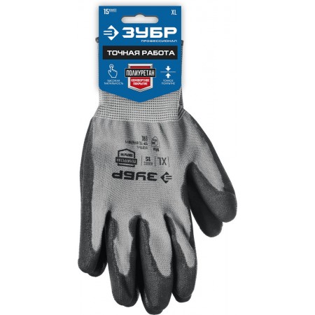Перчатки с полиуретановым покрытием, тонкие, для точных работ, 15 класс, размер L (9) ЗУБР ТОЧНАЯ РАБОТА Профессионал 11275-L_z01