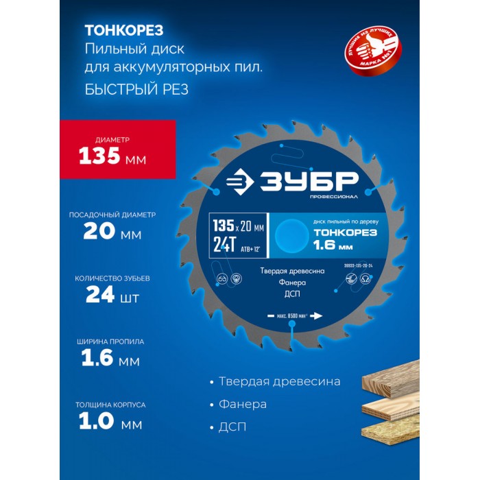 Тонкорез - пильный диск, идеально подходящий для быстрого продольного и поперечного распила любых типов древесины. Используется в том числе и на аккумуляторных пилах для распила древесины мягких и твердых пород, ДСП, МДФ и фанеры.
