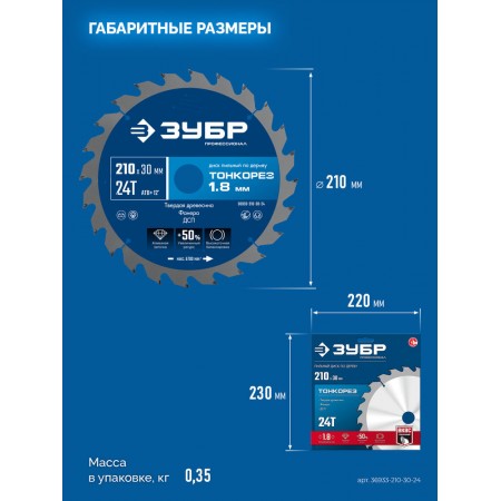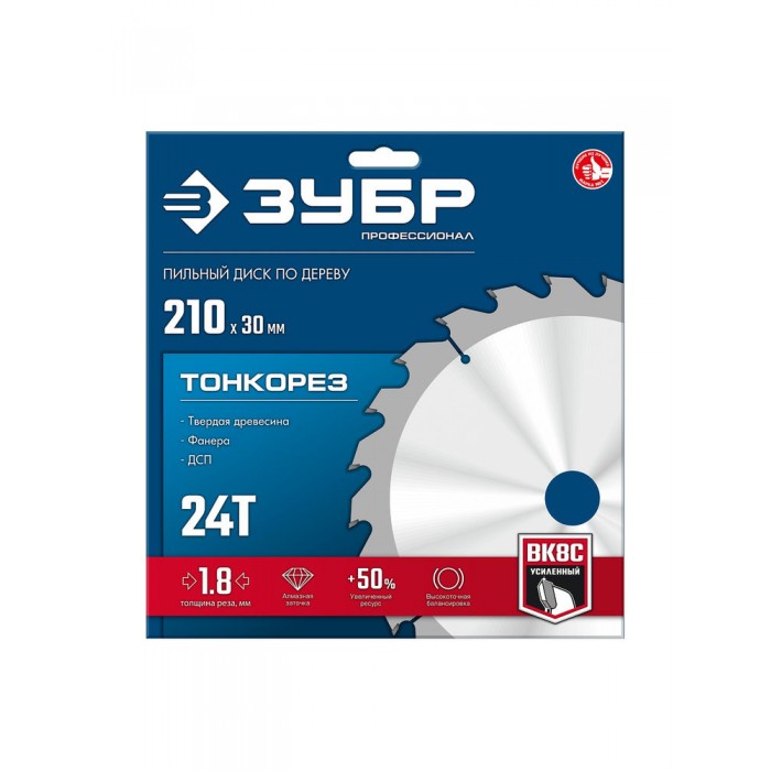Диск пильный по дереву тонкий рез 210 x 30 x 1.8 мм, 24Т ЗУБР Тонкорез Профессионал 36933-210-30-24