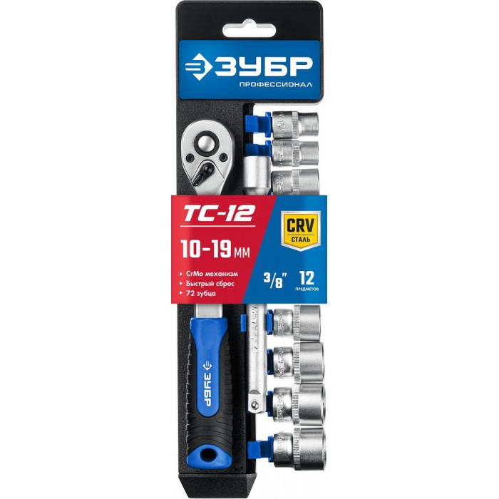 Набор торцовых головок 12 предм., 3/8" ЗУБР ТС-12Б Профессионал 27646-H12_z01