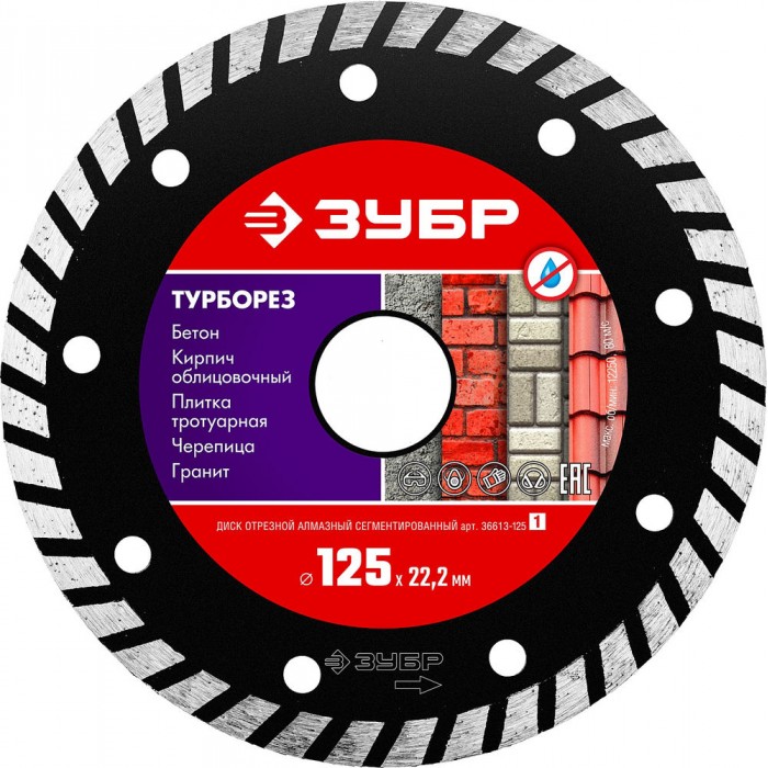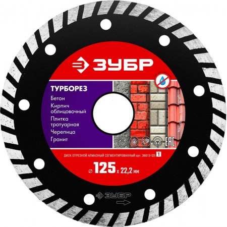 Алмазный диск сегментированный 125 мм (22.2 мм, 7 x 2.4 мм) ЗУБР Турборез 36613-125_z01