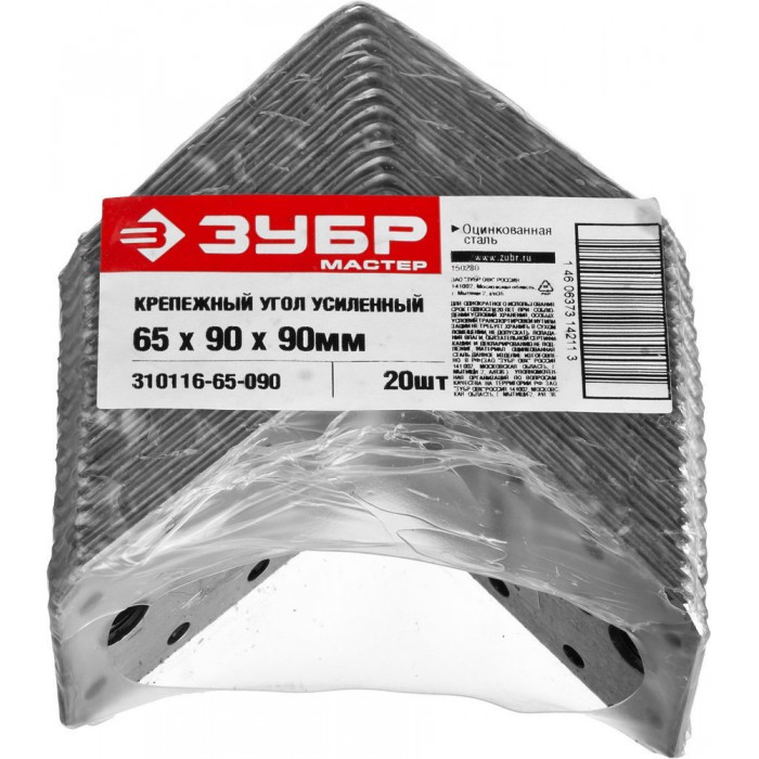 Крепежный уголок усиленный УКУ-2.0 55 x 70 x 70 x 2 мм, цинк ЗУБР 310116-55-070
