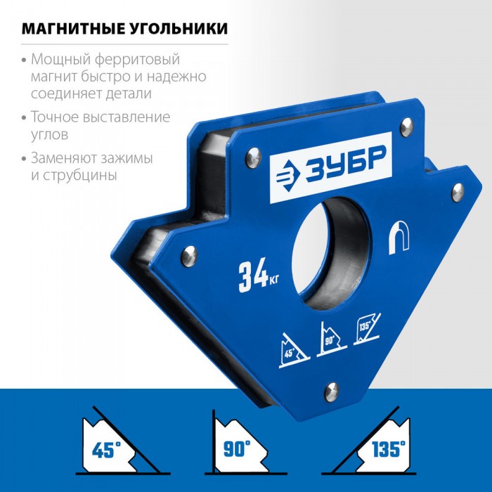 Магнитные угольники для сварки ЗУБР - это быстрое и надежное крепление деталей во время сварочных работ под различными углами.