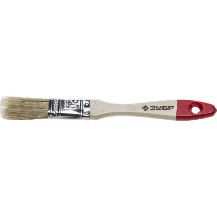 Кисть плоская 20 мм, 3/4", светлая натуральная щетина, деревянная ручка, все виды ЛКМ ЗУБР УНИВЕРСАЛ 4-01001-020