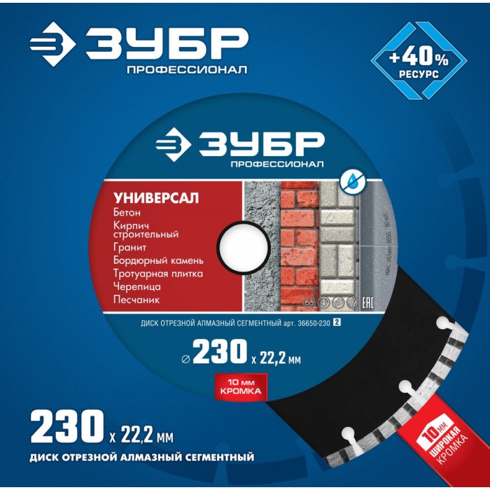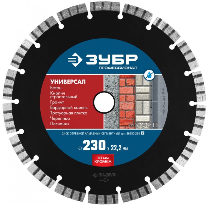 Исключительно высокий уровень качества отрезных алмазных дисков ЗУБР гарантирован комплексной системой контроля всего процесса производства: от качества поступающего сырья до готовой продукции. Корпуса алмазных дисков изготовлены из прочной легированной стали, способной выдержать значительную механическую нагрузку и высокую температуру.
