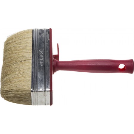 Отличное решение для работы со всеми типами ЛКМ, а так же грунтовки, побелки на большие поверхности, клеевых составов на обои, размывки потолков. Щетина кисти надежно закреплена бандажом из никелированной стали, а наличие удобной пластмассовой рукоятки обеспечит комфортную работу