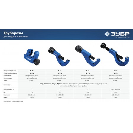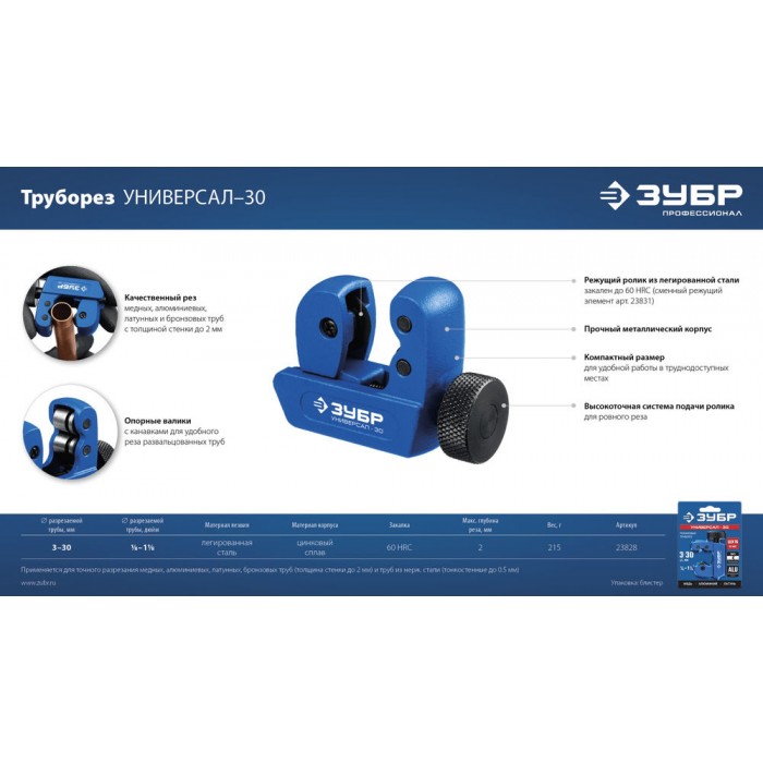 Труборез для меди и алюминия 3 - 30 мм ЗУБР Универсал-30 Профессионал 23828