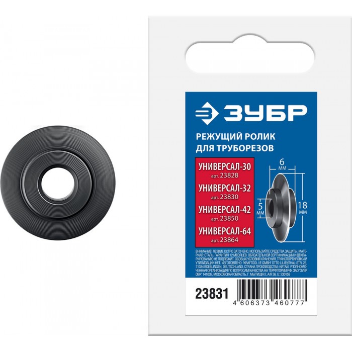 Ролик режущий для трубореза Универсал-30/32/42/64 (для арт. 23828, 23830, 23850, 23864) ЗУБР 23831