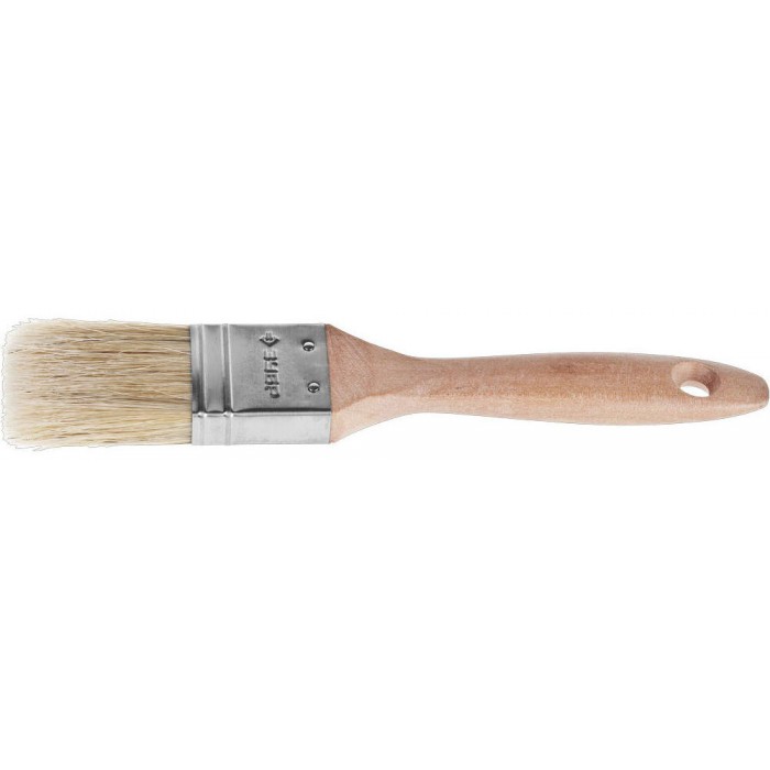 Кисть плоская 38 мм, 1.5", светлая натуральная щетина, деревянная ручка, все виды ЛКМ ЗУБР УНИВЕРСАЛ 01005-038