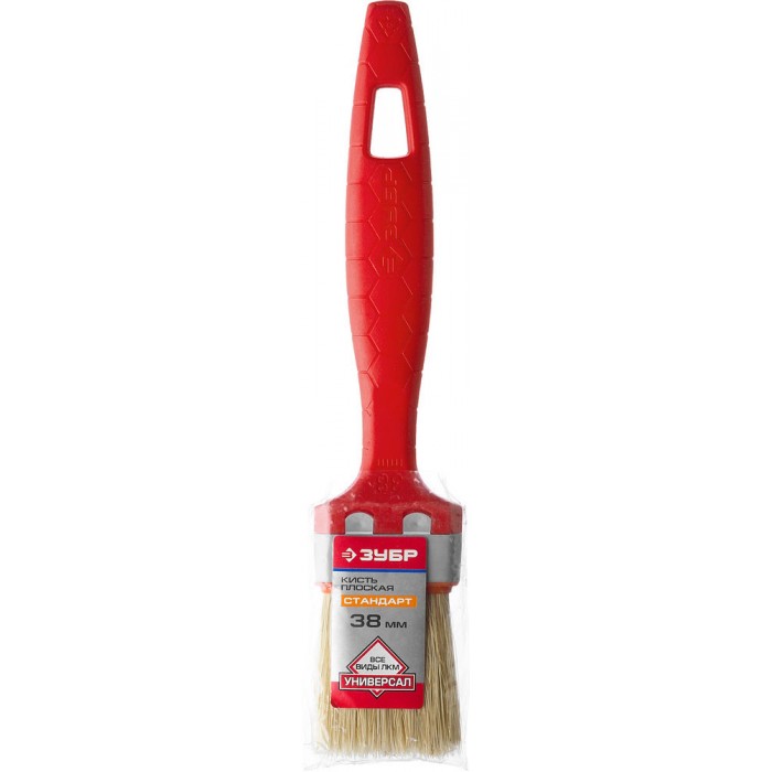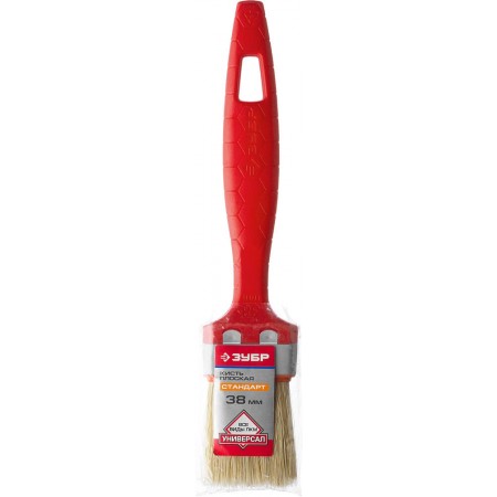 Кисть плоская 38 мм, 1.5", светлая натуральная щетина, пластмассовая ручка, все виды ЛКМ ЗУБР УНИВЕРСАЛ 01015-038