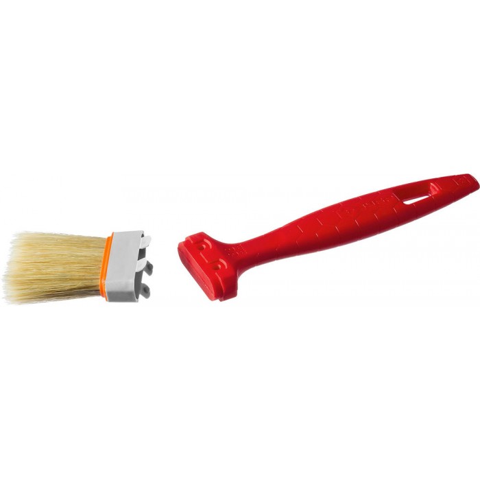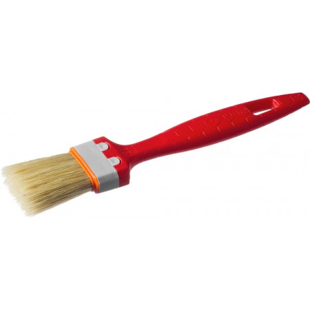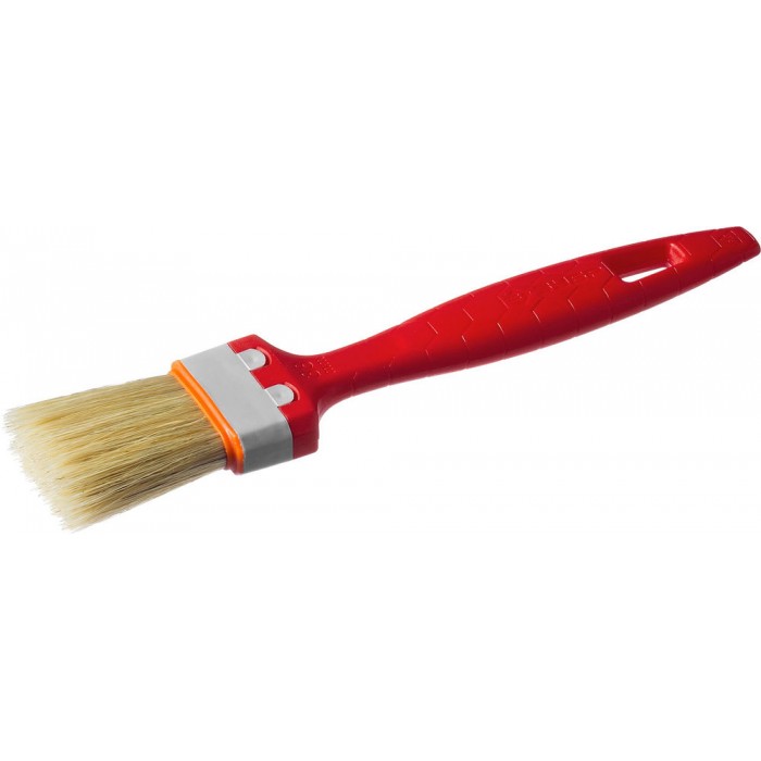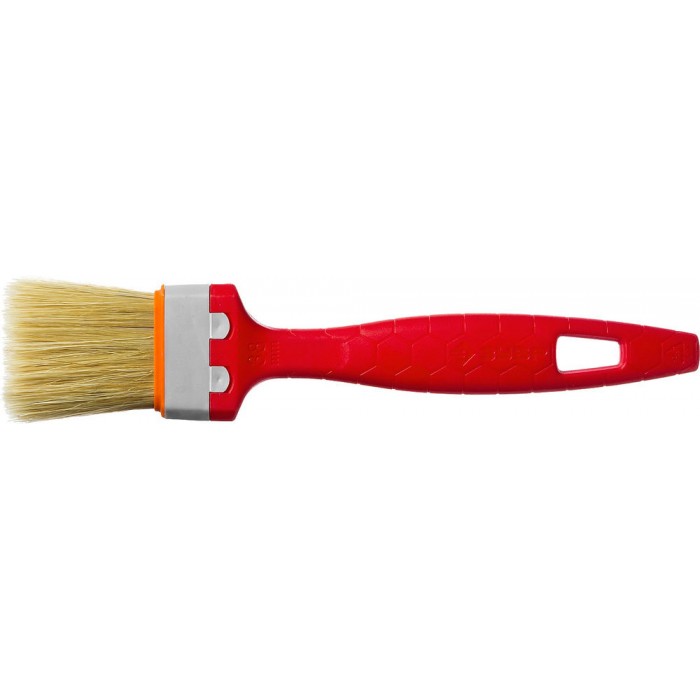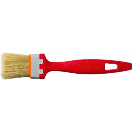 Натуральная щетина обеспечит оптимальное нанесение различных видов ЛКМ, щетина кисти надежно закреплена пластмассовым бандажом, а наличие удобной рукоятки обеспечит комфортную работу. Особенность данной конструкции позволяет раздельную утилизацию ручки и щетины.