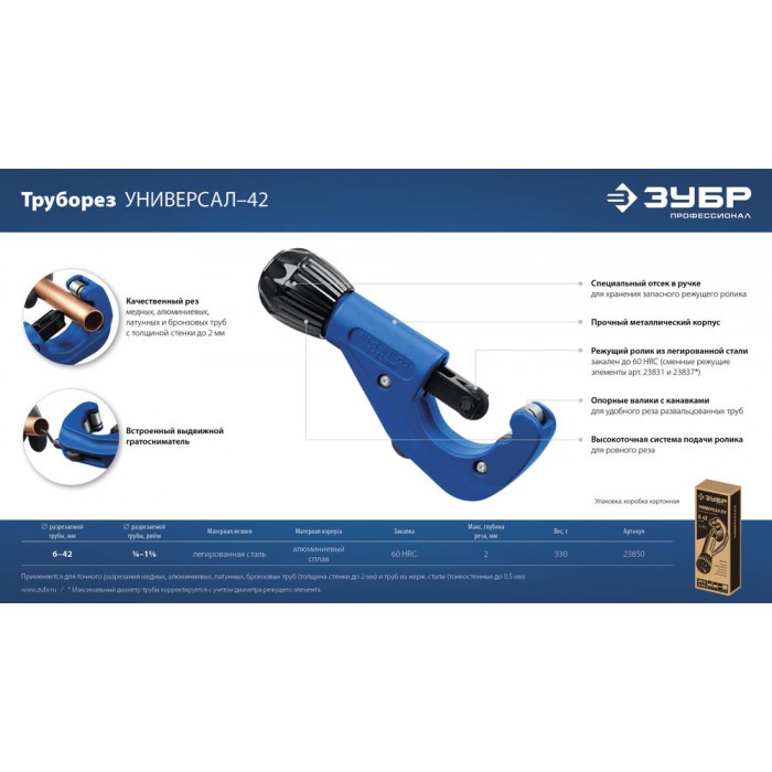Труборез для меди и алюминия 6 - 42 мм ЗУБР Универсал-42 Профессионал 23850
