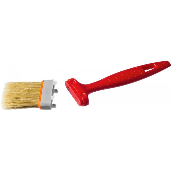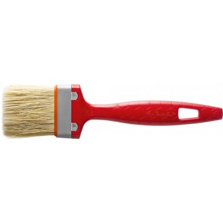 Натуральная щетина обеспечит оптимальное нанесение различных видов ЛКМ, щетина кисти надежно закреплена пластмассовым бандажом, а наличие удобной рукоятки обеспечит комфортную работу. Особенность данной конструкции позволяет раздельную утилизацию ручки и щетины.