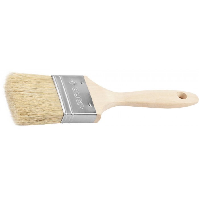 Кисть плоская 63 мм, 2.5", светлая натуральная щетина, деревянная ручка, все виды ЛКМ ЗУБР УНИВЕРСАЛ 01005-063