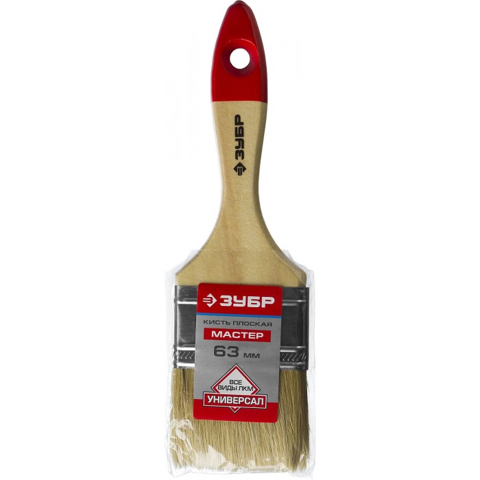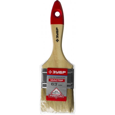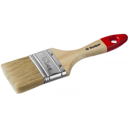 Кисть плоская 63 мм, 2.5", светлая натуральная щетина, деревянная ручка, все виды ЛКМ ЗУБР УНИВЕРСАЛ 4-01003-063