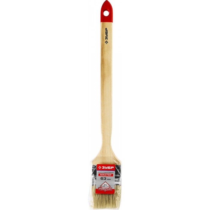 Кисть радиаторная 63 мм, 2.5", светлая натуральная щетина, деревянная ручка, все виды ЛКМ ЗУБР УНИВЕРСАЛ 01041-063