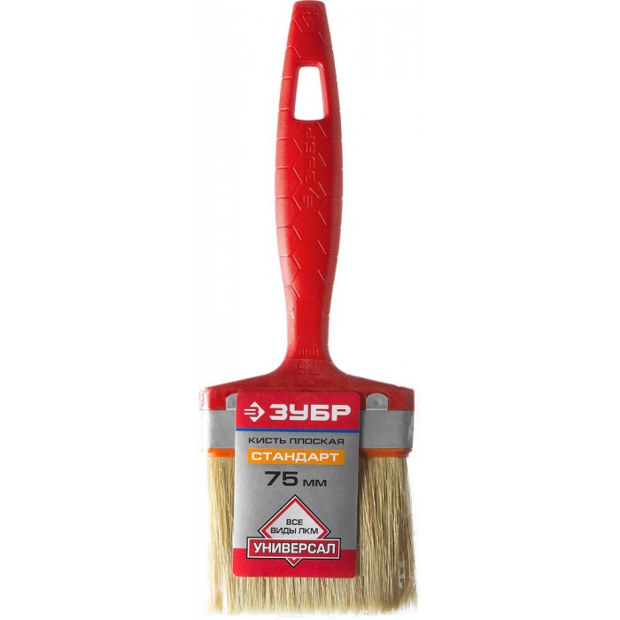 Кисть плоская 75 мм, 3", светлая натуральная щетина, пластмассовая ручка, все виды ЛКМ ЗУБР УНИВЕРСАЛ 01015-075