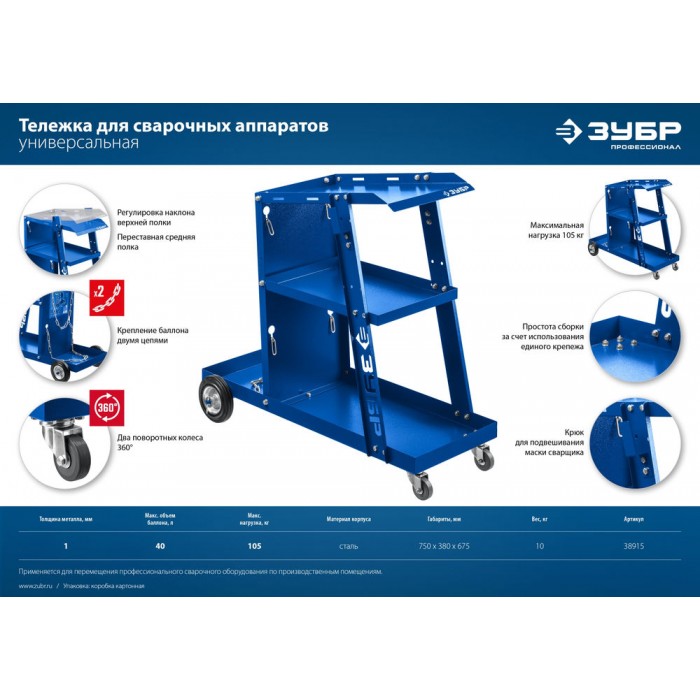 Универсальная тележка для сварочных аппаратов Профессионал ЗУБР 38915