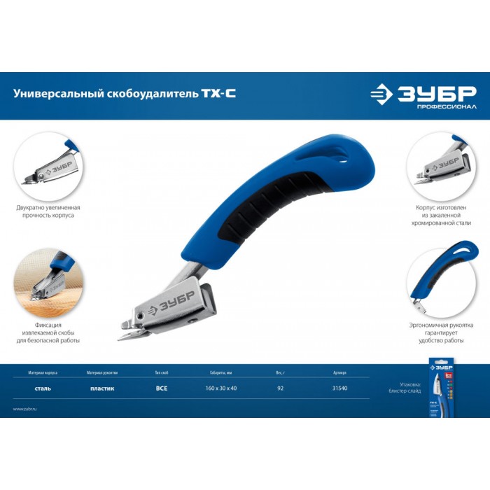 Для удаления скоб различного типа и размера.