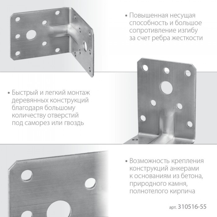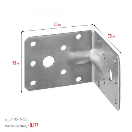 Крепежный уголок усиленный нержавеющий УНКУ-2.0 55 x 70 x 70 x 2 мм ЗУБР Профессионал 310516-55