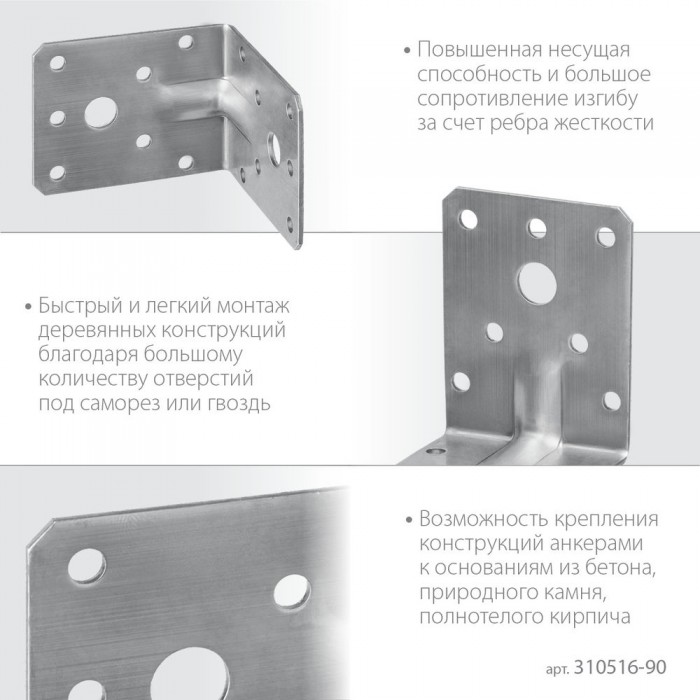 - Большое количество отверстий под гвоздь способствует легкому и быстрому креплению угла