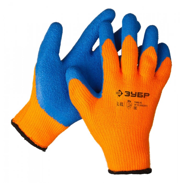 Перчатки акриловые сигнального цвета, рельефное латексное покрытие, утепленные, 10 класс, размер L-XL ЗУБР УРАЛ Профессионал 11465-XL