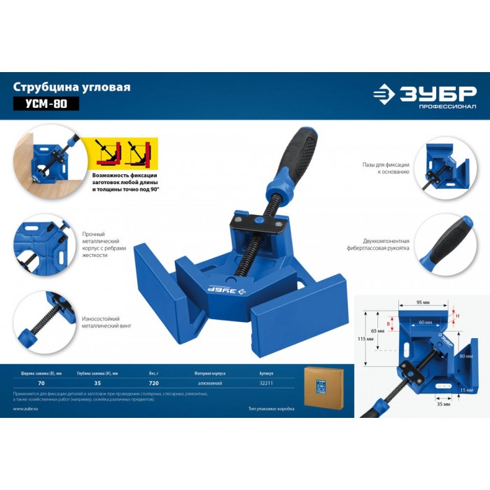 Струбцина угловая УСМ-80 2 x 70 мм ЗУБР Профессионал 32211
