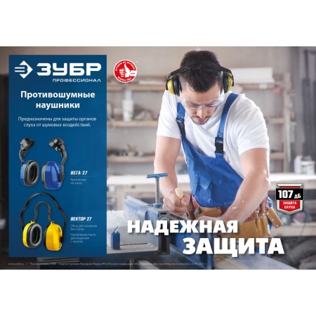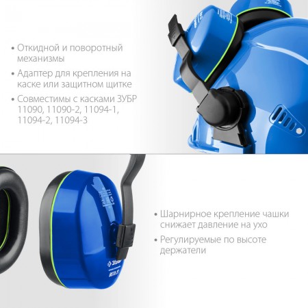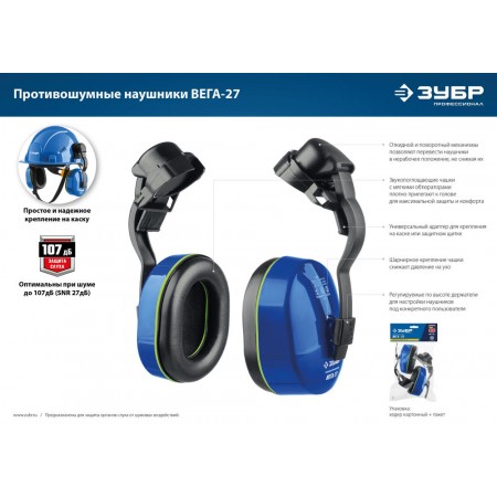 Наушники противошумные с креплением на каску защита до 107 дБ ЗУБР ВЕГА-27 Профессионал 11371