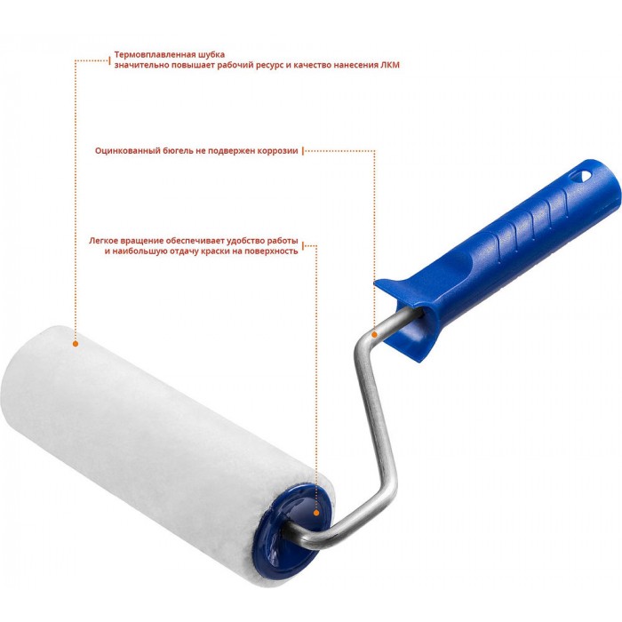 Валик малярный ВЕЛЮР 8 x 180 мм, бюгель 8 мм, ворс 4 мм, 50% акрил, 50% шерсть, для лаков и эмалей ЗУБР Профессионал 03514-18