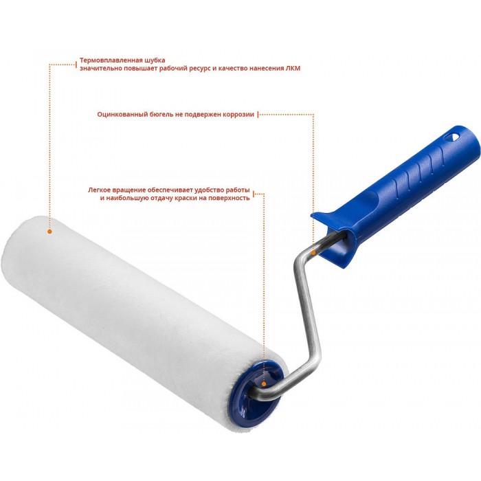Валик малярный ВЕЛЮР 8 x 240 мм, бюгель 8 мм, ворс 4 мм, 50% акрил, 50% шерсть, для лаков и эмалей ЗУБР Профессионал 03514-24