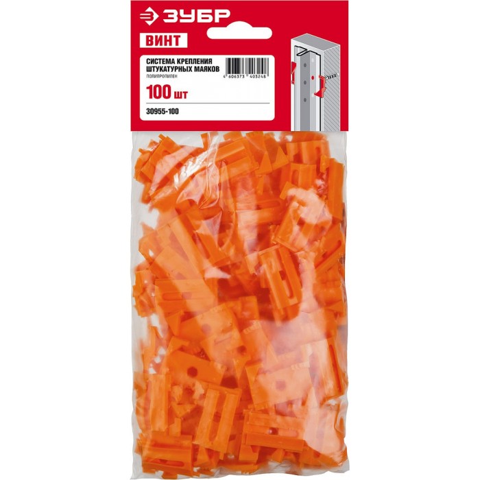 Для установки и выравнивания штукатурного маяка в процессе отделочных работ. Порядок установки: 1. Нанесите на стену вертикальные линии в местах установки штукатурных маяков, просверлите отверстия диаметром 6мм и глубиной 40мм, по линии, из расчета 5-6 отверстий на один штукатурный маяк 2. Вставьте в отверстия дюбели 6х30мм, вкрутите саморезы 3,5х51мм (или другой длины, если необходимо) и выровняйте по уровню или отвесу головки саморезов крайних штукатурных маяков 3. Установите крепления штукатурных маяков на вкрученные саморезы, расположив их под углом 45° относительно линии установки штукатурного маяка. Установите крайние штукатурные маяки и зафиксируйте их, повернув крепления по часовой стрелке до щелчка. 4. После установки крайних штукатурных маяков натяните между ними нить и, если это необходимо, скорректируйте положение крайних штукатурных маяков путем вкручивания и выкручивания саморезов, добиваясь минимаотного расстояния между нитью и наиболее выступающим участком стены 5. Пос
