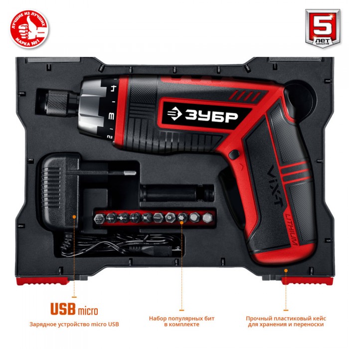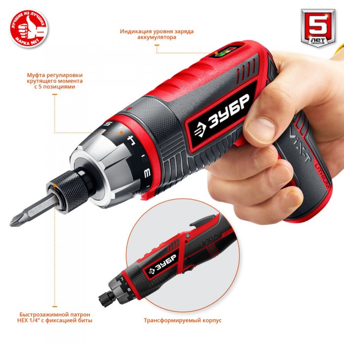 Инструмент для заворачивания/отворачивания крепежа с Li-Ion аккумулятором - незаменимый помощник в быту. Многофункциональность, мощность, удобство в эксплуатации, легкая замена инструмента, встроенная подсветка, настройка и трансформация под любой режим работы, большой набор сменного инструмента - неоспоримые преимущества отвертки ЗУБР