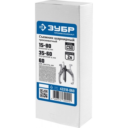 Съемник внешний d 15 - 80 мм внутренний d 35 - 60 мм шарнирный трехзахватный Профессионал ЗУБР 43318-060