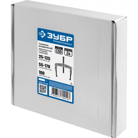 Съемник внешний d 25 - 125 мм внутренний d 55 - 170 мм раздвижной двухзахватный с тонкими захватами Профессионал ЗУБР 43313-170-100