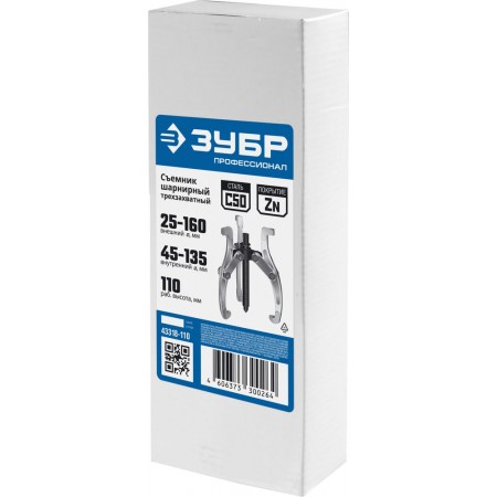 Съемник внешний d 25 - 160 мм внутренний d 45 - 135 мм шарнирный трехзахватный Профессионал ЗУБР 43318-110