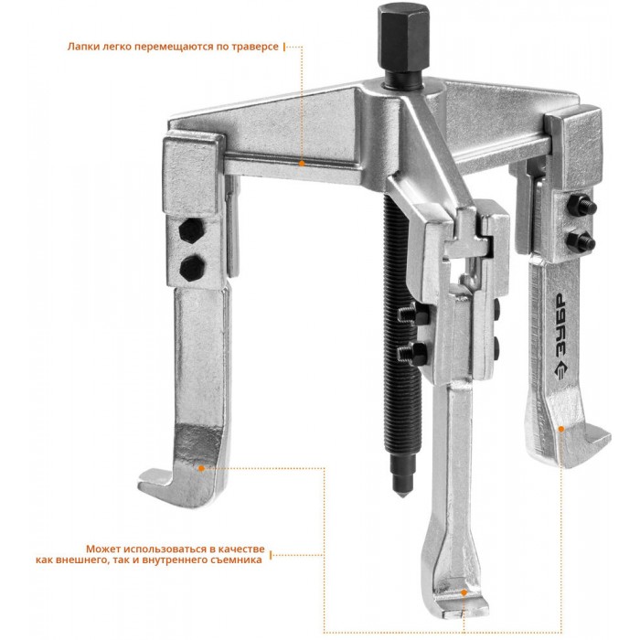 Съемник внешний d 30 - 130 мм внутренний d 70 - 180 мм раздвижной трехзахватный Профессионал ЗУБР 43312-180-150