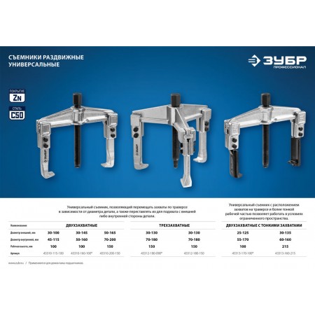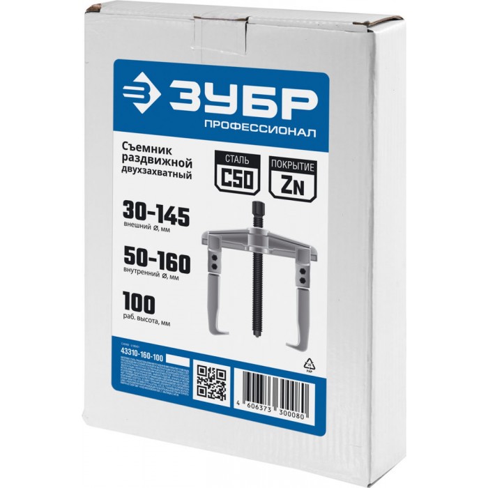 Съемник внешний d 30 - 145 мм внутренний d 50 - 160 мм раздвижной двухзахватный Профессионал ЗУБР 43310-160-100